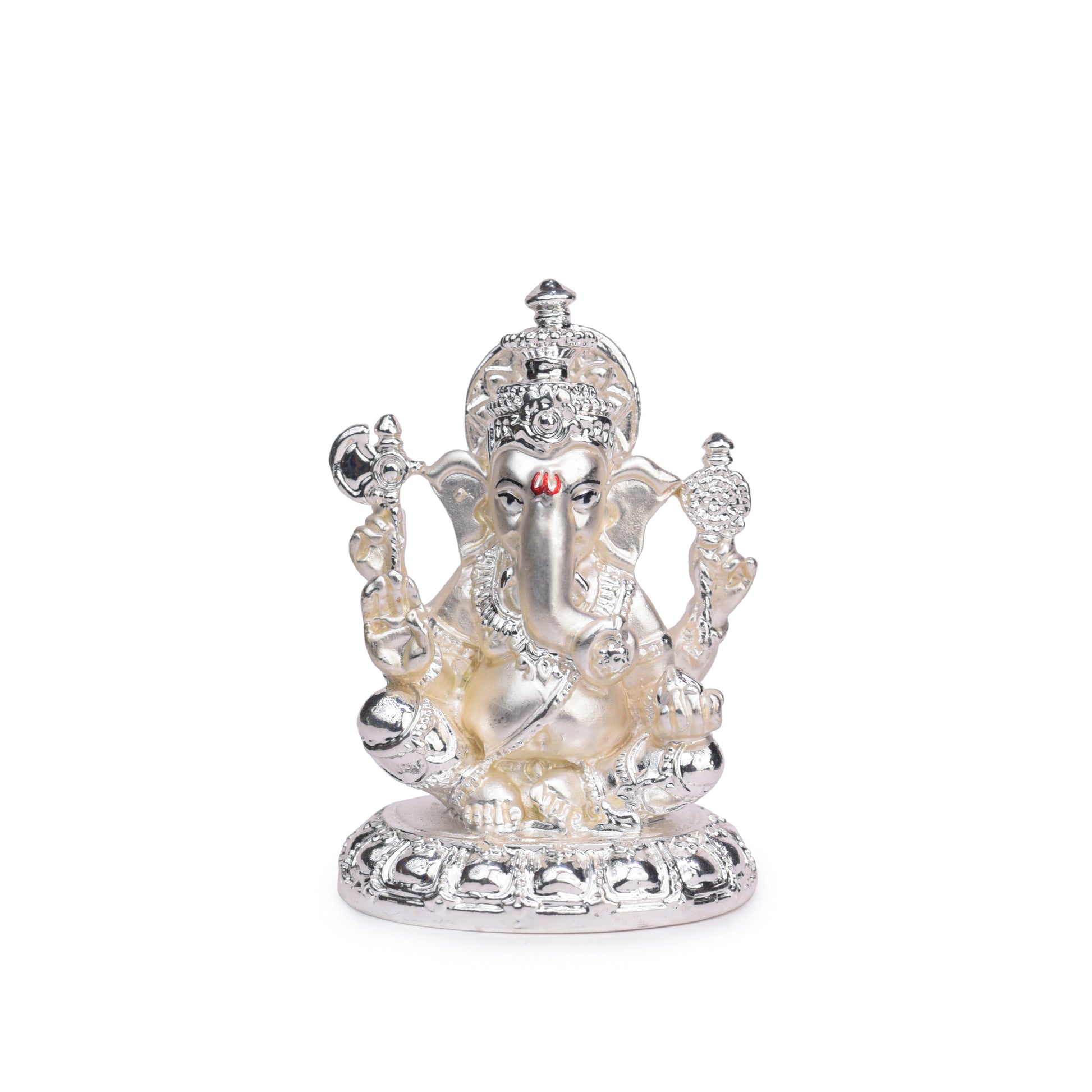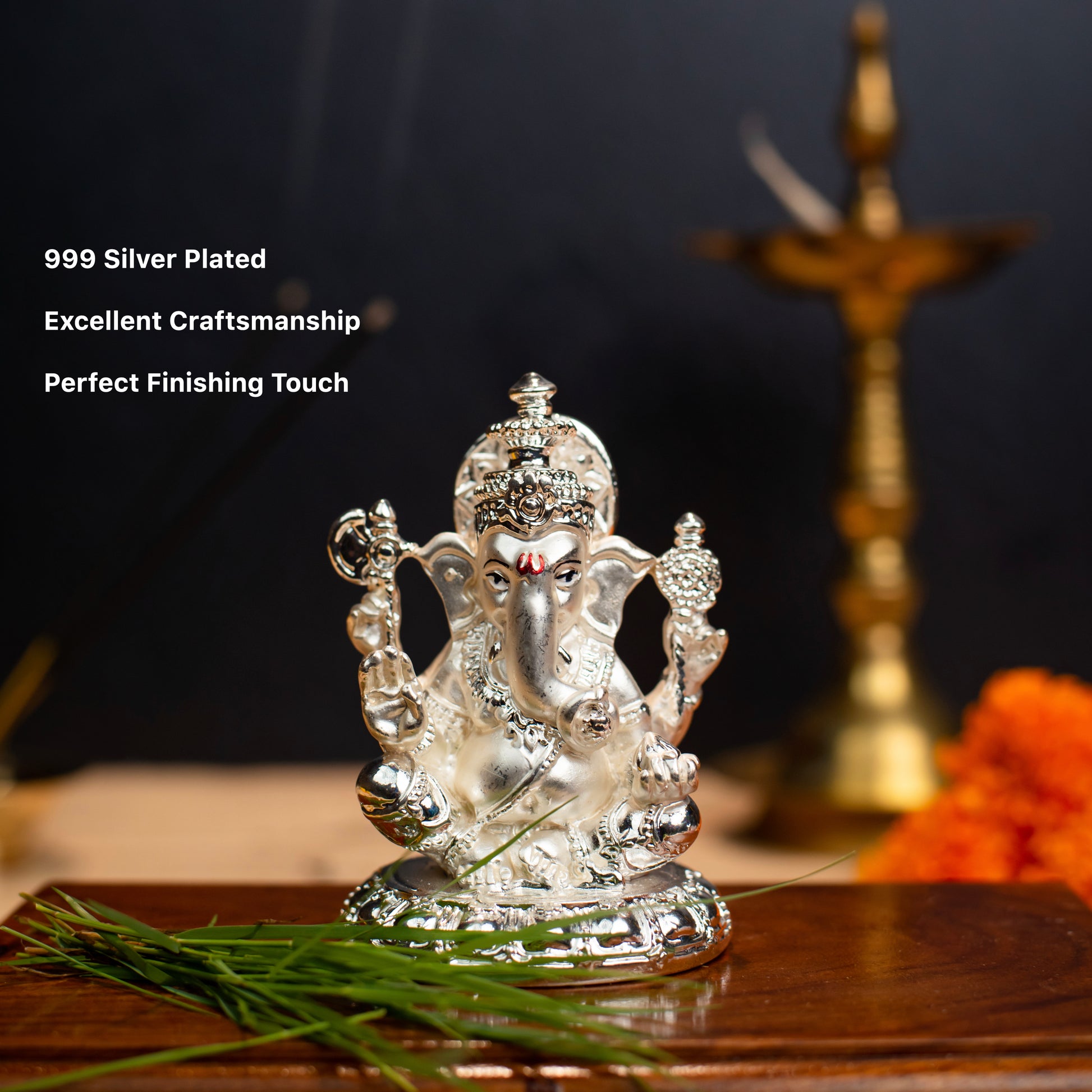 - MATERIAL & DURABILITY: Plated with 999 Silver, this Ganpati idol is built for longevity and brilliance. The resin core ensures its durability while maintaining its intricate beauty.
