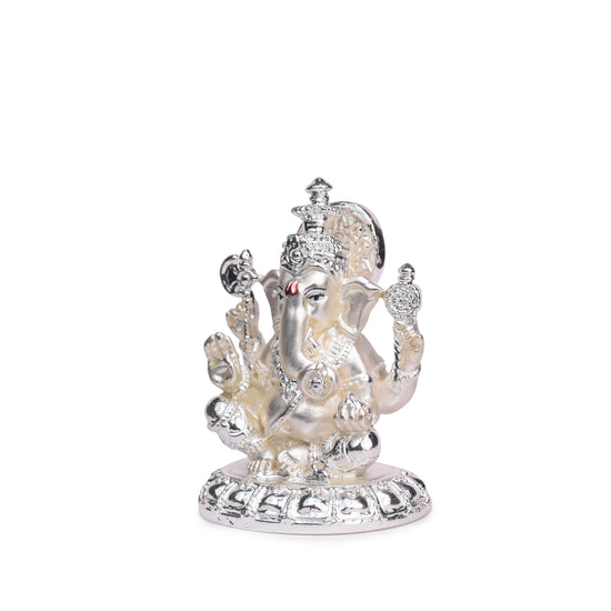 Ganpati Sitting on Flower Base Idol for Home Decor 999 Silver Plated Sculpture of Ganpati for Home, Office, Temple and Pooja Gift