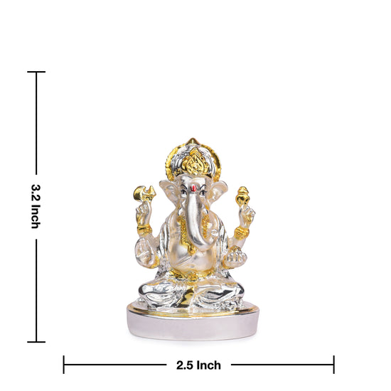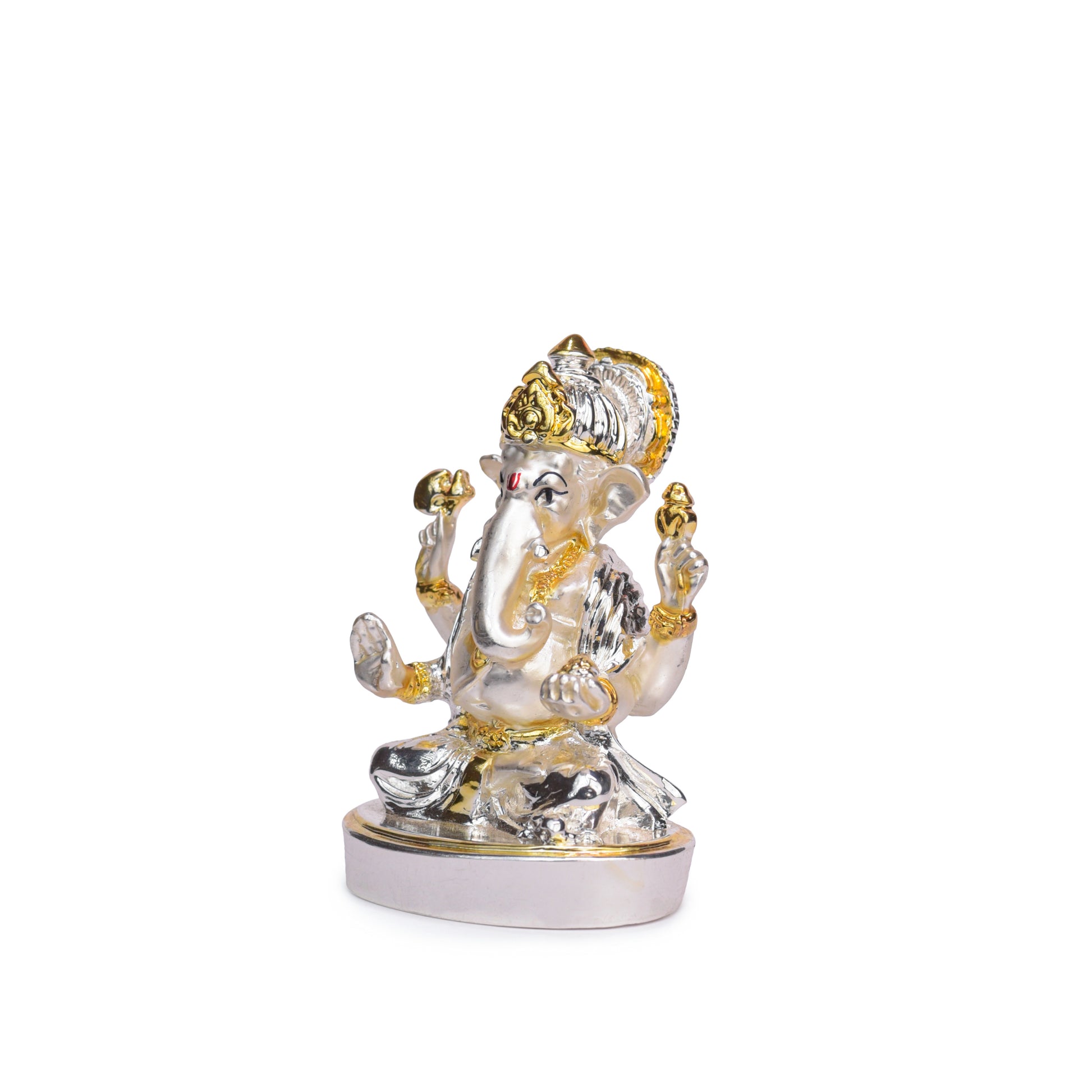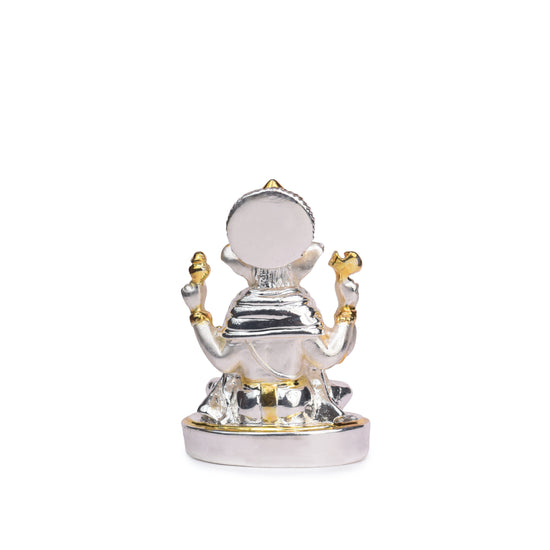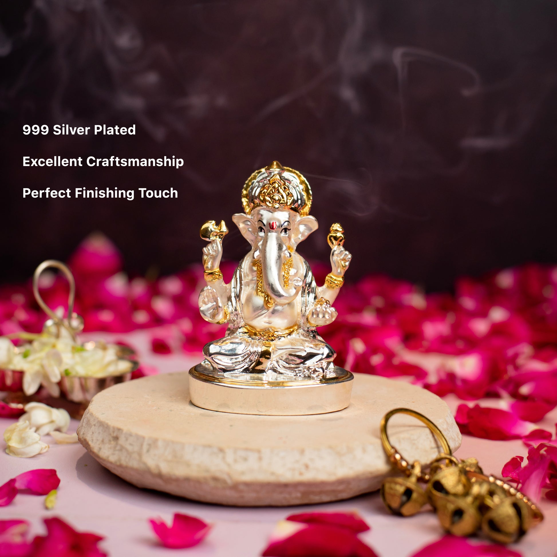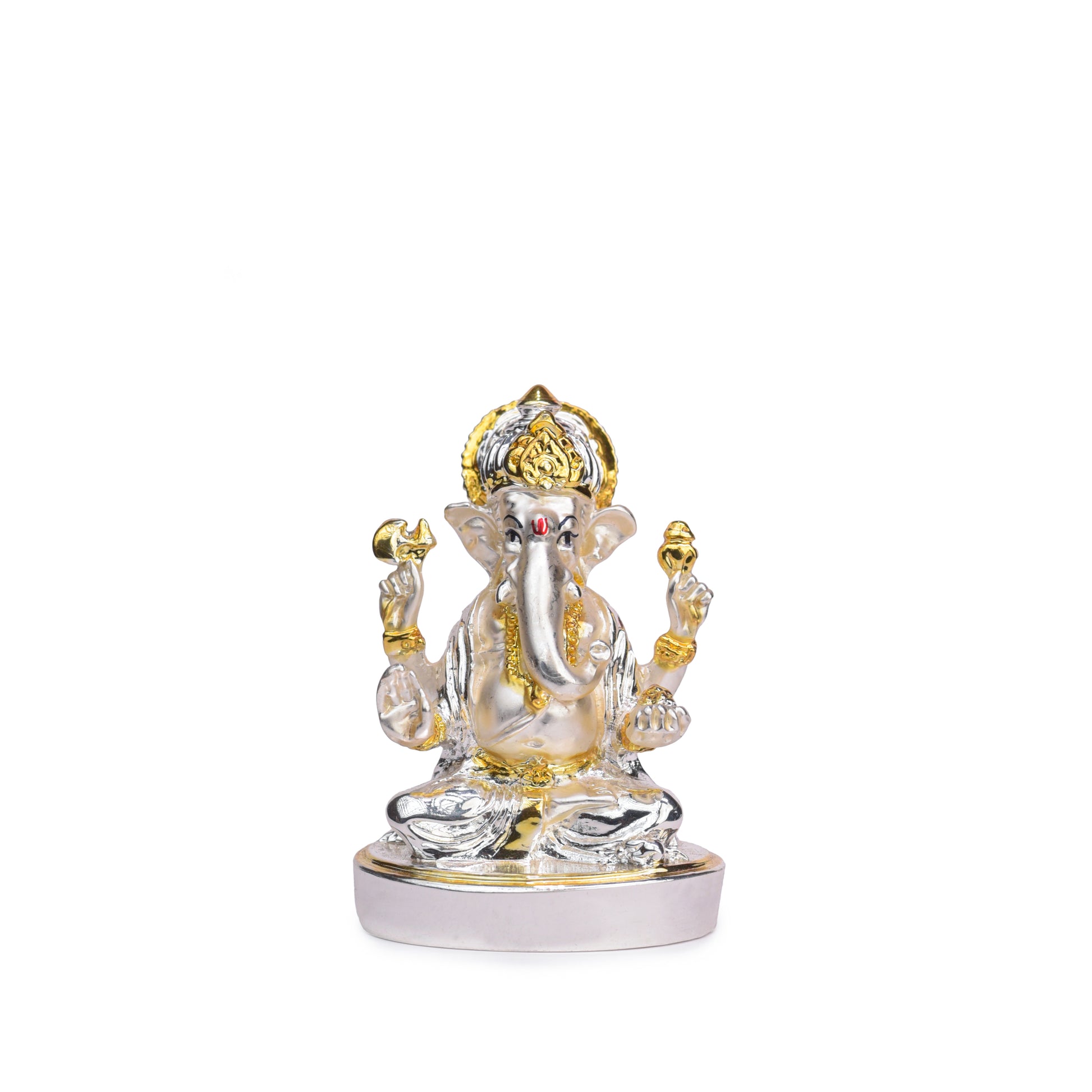 Ganpati Sitting on Oval Base Idol for Home Decor 24K Gold and 999 Silver Plated Sculpture of Ganpati for Home, Office, Temple and Pooja Gift
