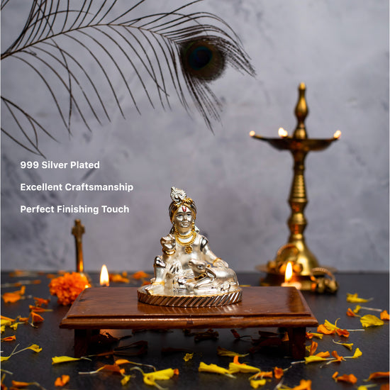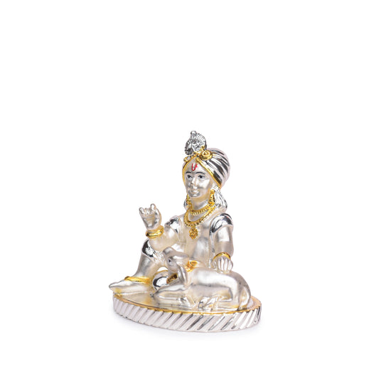 - MATERIAL & DURABILITY: Plated with 24K Gold and 999 Silver, this Krishna idol is built to last, with its resin structure ensuring durability and charm.