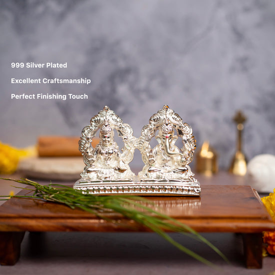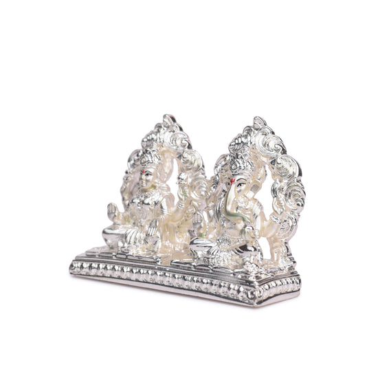 Laxmi Ganpati Pair for Home Decor 999 Silver Plated Sculpture of Laxmi and Ganpati for Home, Office, Temple and Pooja Gift